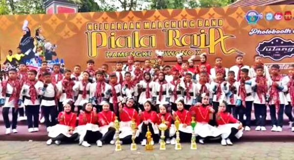 Tim Marching Band Gema Nada SD IT IPHI Payakumbuh berswafoto setelah menjadi Juara Umum Junior Brass pada Kejuaraan Marching Band Piala Raja Hamengkubuwono X di Yogyakarta. (foto; ist)