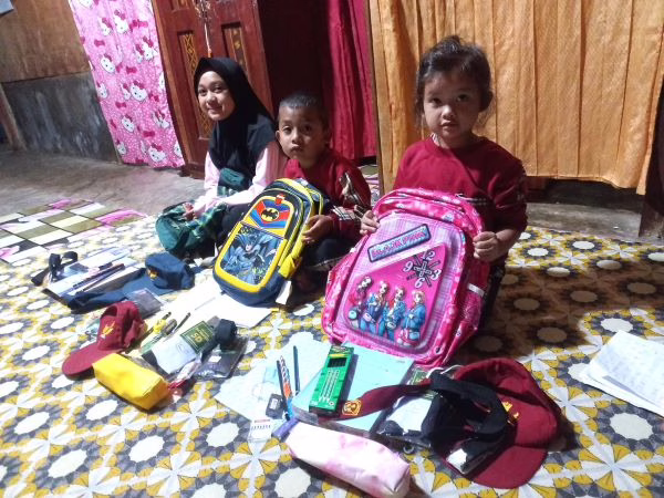 Namun, di tengah kegelapan, cahaya kebaikan mulai menyala. Seorang dermawan tak dikenal memberikan bantuan berupa perangkat sekolah untuk ketiga anak itu.