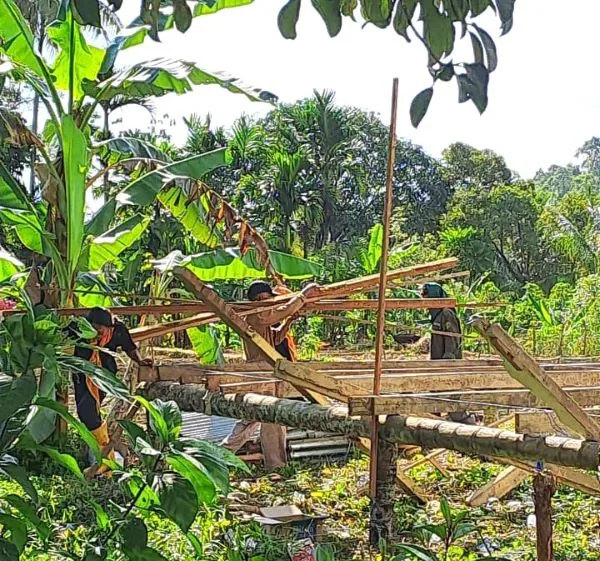 Pembangunan huntara mandiri ini dimulai sejak tanggal 30 November 2025, dan telah dapat ditempati sejak tanggal 8 Desember 2025. Proses pembangunan dilaksanakan selama 10 hari dengan memanfaatkan sisa kayu dan seng rumah warga yang tersisa dari hantaman arus air bah.