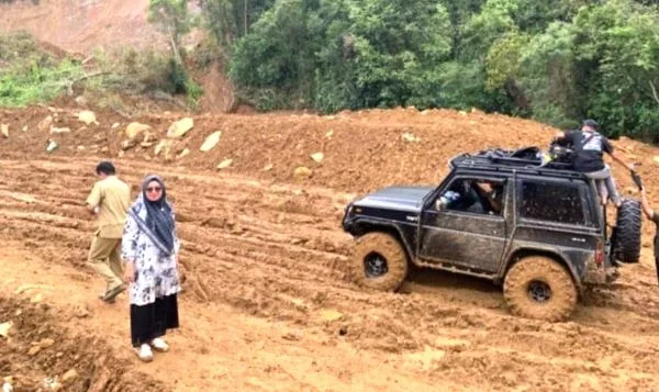 Walau sempat terjebak di tengah lumpur dan mobil yang dipakai ditarik. Namun bupati bersama rombongan sampai juga di lokasi yang dituju dan bantuan tersalurkan.