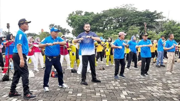 PADANG, FOKUSSUMBAR.COM – Ribuan warga Kota Padang ikut ambil bagian dalam Senam Massal Gebyar KORMI Kota Padang yang digelar di Lapangan Apeksi Balaikota Aie Pacah, Minggu (28/12/2025). Acara ini mengusung slogan “Sehat, Bugar, Gembira, Luar Biasa” dan dihadiri Wali Kota Padang, Fadly Amran dan Ketua KORMI Kota Padang, Helmi Moesim.
