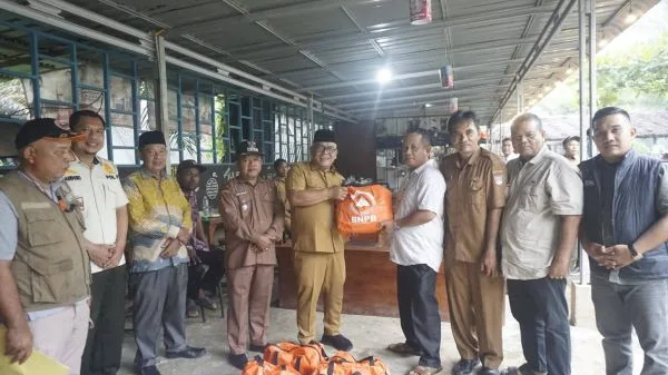 Sebanyak 100 paket sembako dari Badan Nasional Penanggulangan Bencana (BNPB) diserahkan secara simbolis oleh Bupati Pasaman Barat, Yulianto, kepada Wali Nagari Seberang Kenaikan dan Camat Gunung Tuleh untuk selanjutnya didistribusikan kepada warga yang membutuhkan, Selasa (30/12/2025).
