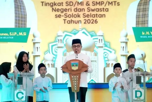 SOLOK SELATAN, FOKUSSUMBAR.COM – Dalam rangka menyambut Hari Ulang Tahun (HUT) Kabupaten Solok Selatan ke-22, Pemerintah Kabupaten Solok Selatan menggelar Lomba Cerdas Qur’an Tahun 2025 sebagai bagian dari komitmen membangun sumber daya manusia yang beriman, berakhlak, dan berkarakter. Kegiatan tersebut dibuka langsung oleh Bupati Solok Selatan, H. Khairunas, pada Jumat (2/1/2026).