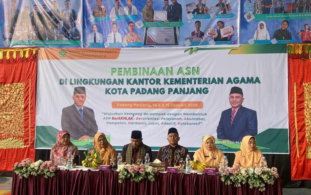 PADANG PANJANG, FOKUSSUMBAR.COM — Kepala Kantor Wilayah Kementerian Agama Provinsi Sumatera Barat, H. Mustafa, M.Ag., secara resmi membuka kegiatan Pembinaan ASN (Capacity Building) di lingkungan Kantor Kementerian Agama Kota Padang Panjang, Kamis (14/1/2026).