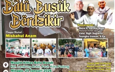 PADANG, FOKUSSUMBAR.COM – Kebersamaan dan semangat religius warga Batu Busuk begitu terasa dalam kegiatan Batu Busuk Berzikir yang berlangsung khidmat di Masjid Ikhlas Batu Busuk, Kelurahan Lambung Bukik, Kecamatan Pauh, Kota Padang, Minggu (25/1/2026).