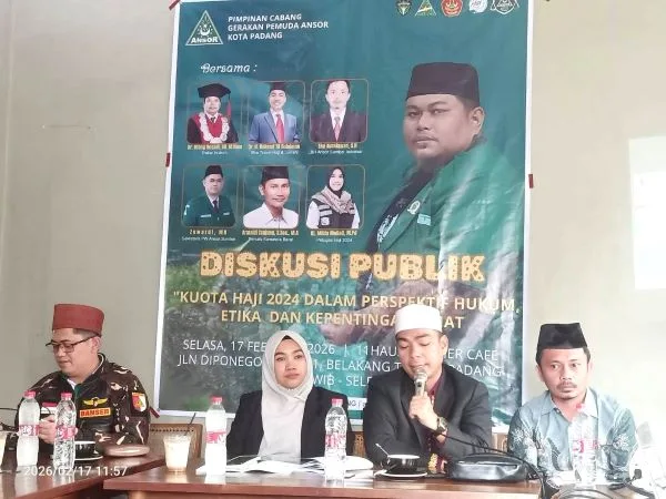 Hal ini jadi poin penting dari diskusi publik dengan tema “Kuota Haji 2024 Dalam Perspektif Hukum Etika dan Kepentingan Umat” yang diselenggarakan Pimpinan Cabang Gerakan Pemuda Ansor Kota Padang, Lembaga Bantuan Hukum (LBH) GP Ansor PW Sumatera Barat dan pihak terkait pada Selasa (17/2/2026), di salah satu cafe di Kota Padang. Peserta perwakilan dari PW GP Ansor Sumatera Barat, PC GP Ansor Solok, PC GP Ansor Bukittinggi, PC GP Ansor Pesisir Selatan dan sebagainya.
