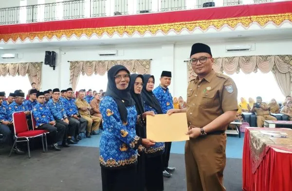 PASAMAN BARAT, FOKUSSUMBAR.COM – Pemerintah Kabupaten (Pemkab) Pasaman Barat menyerahkan surat keputusan (SK) penempatan dan penugasan kepada 79 kepala sekolah jenjang Sekolah Dasar (SD) dan Sekolah Menengah Pertama (SMP), Senin (23/2/2026), di Aula Kantor Bupati Pasaman Barat.