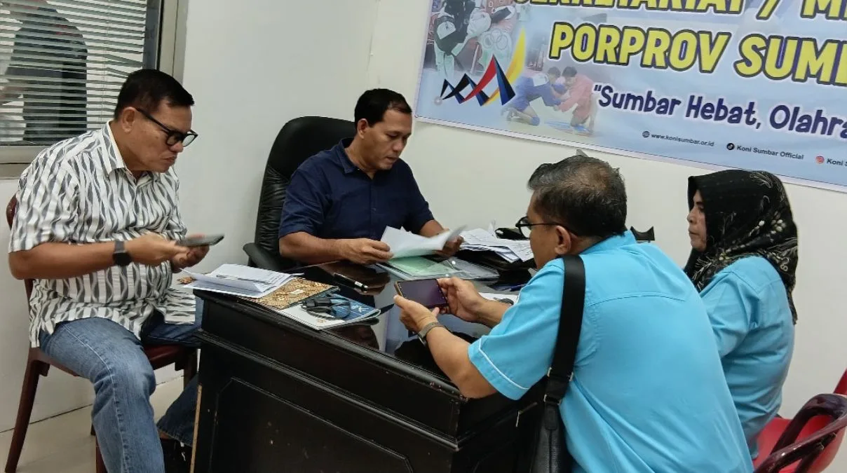 PADANG, FOKUSSUMBAR.COM — KONI Provinsi Sumatera Barat menggelar pertemuan dengan Pengurus Provinsi (Pengprov) cabang olahraga (cabor) calon peserta Porprov XVI Sumbar 2026. Agenda ini berlangsung selama empat hari, mulai Kamis (26/2/2026) hingga Selasa (3/3/2026), di Sekretariat KONI Sumbar, Jalan Rasuna Said No. 87, Padang.