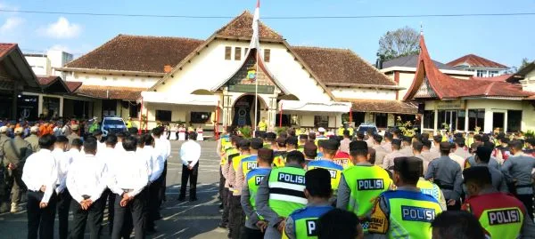 Apel dilaksanakan di halaman Polresta Bukittinggi, Kamis sore (12/3/2026), bentuk kesiapan pengamanan menghadapi perayaan Idul Fitri 1447 H/ 2026 M.