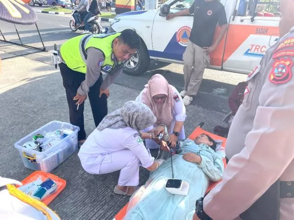 Sesampainya di posko, korban langsung diberikan pelayanan medis oleh tim yang bertugas. Berdasarkan hasil pemeriksaan awal, tekanan darah korban tercatat cukup tinggi yakni 175/156 mmHg, dengan saturasi oksigen 93 persen. Hingga saat penanganan berlangsung, korban masih dalam kondisi tidak sadar.