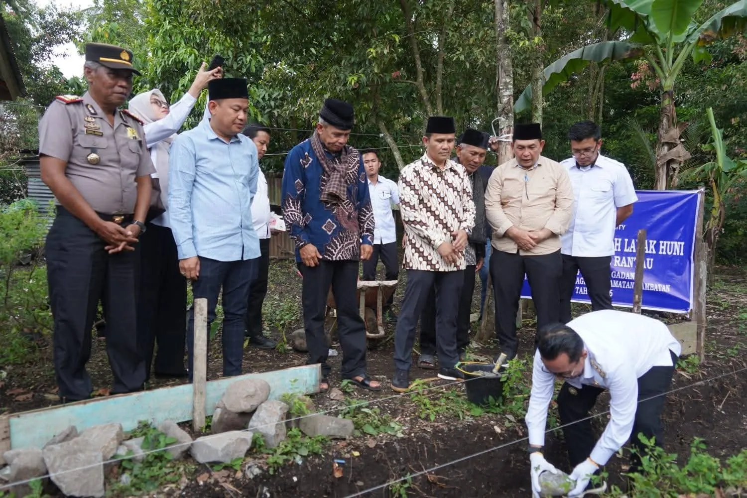 Bupati Eka Putra letakan batu pertama pembangunan rumah layak huni bantuan perantau. (Foto: ist)