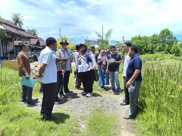 Pelaksana Tugas (Plt) Kepala Dinas Perikanan Pasbar, Jon Endri, bersama Kepala Bidang Perikanan Budidaya, Winardi, serta perangkat Nagari Sasak. mendampingi tim survei Kementerian Kelautan dan Perikanan (KKP) Republik Indonesia meninjau calon lokasi pembangunan Kampung Nelayan Merah Putih (KNMP) tahun 2026 di Kecamatan Sasak Ranah Pasisie. (foto; ist)