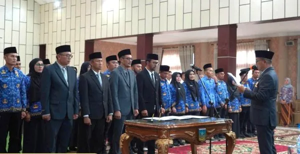 Sekretaris Daerah Dr. H. Syamsurizaldi, melantik dan mengukuhkan sebanyak 32 orang pejabat eselon mulai dari Pejabat Pimpinan Tinggi Pratama atau Kepala OPD hingga Jabatan Administrator dan Pengawas. (foto; ist)