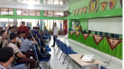 Kabid Jarahnitra Dinas Kebudayaan Provinsi Sumatera Barat, Zardi Syahrir, SH., MM berikan materi pembelajaran Bimtek Melestarikan Nilai-Nilai Tradisi Silek Pangian. (foto; ist)