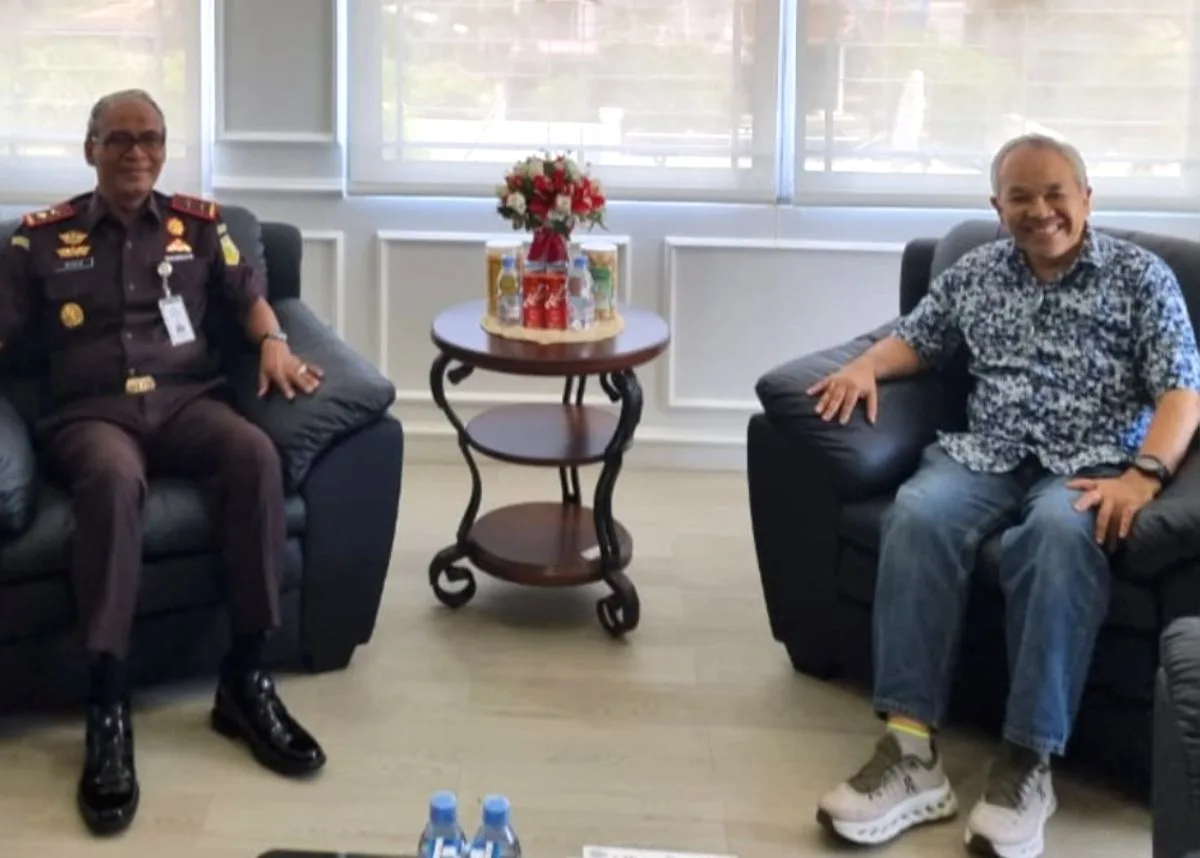 Muhibuddin ketika menerima Aqua Dwipayana di ruang kerjanya, Kejati Sumbar (30/3/2026). Kini Muhibuddin menjabat Kejati Sumut. (Foto ist)