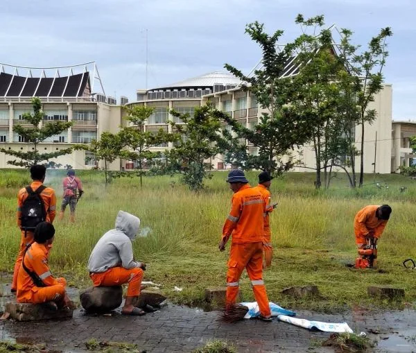 Pada Rabu kemarin (15/4/2026), sejumlah petugas dikerahkan untuk melakukan pembersihan dan pemotongan rumput di kawasan Balai Kota Padang, tepatnya di sekitar gedung kantor Badan Kepegawaian Daerah (BKD) sampai gedung BPBD.