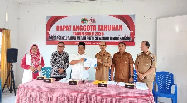 PADANG, FOKUSSUMBAR.COM – Koperasi Kelurahan Merah Putih (KKMP) yang berkedudukan di Kelurahan Sawahan Timur, Kecamatan Padang Timur, Kota Padang, sukses menyelenggarakan Rapat Anggota Tahunan (RAT) Tutup Buku Tahun 2025 pada hari Selasa 21 April 2026 bertempat di Aula Keserasian Sosial Kelurahan Sawahan Timur.