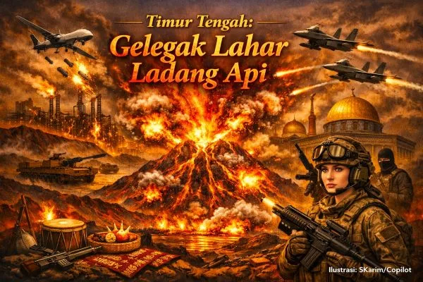 TIMUR Tengah adalah panggung sejarah yang tak pernah sepi dari gelegak lahar panas, lidah api. Di antara gurun dan teluk, mengalir minyak dan darah.