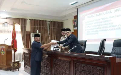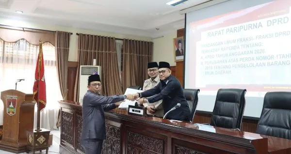 Agenda tersebut membahas dua rancangan peraturan daerah (ranperda) strategis, yakni Ranperda tentang Anggaran Pendapatan dan Belanja Daerah (APBD) Tahun Anggaran 2026 serta Ranperda tentang Perubahan atas Perda Nomor 1 Tahun 2019 tentang Pengelolaan Barang Milik Daerah (BMD).