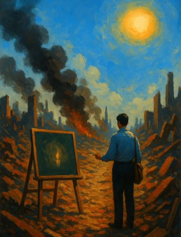 ketika kota itu remuk menjadi debu panas yang bahkan angin pun ragu menyentuh,