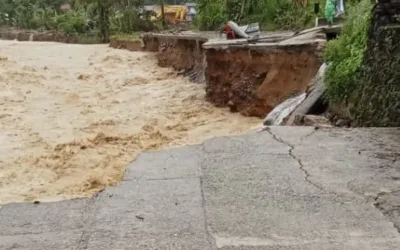 Hujan Mengguyur Sejak Malam, Jalan Amblas Akibat Banjir, Akses ke Batu Busuk Putus