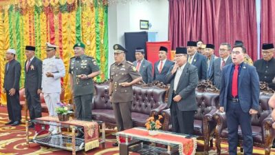 PESISIR SELATAN, FOKUSSUMBAR.COM – Pasangan Bupati-Wakil Bupati Pesisir Selatan periode 2025-2030, Hendrajoni, SH., MH Dt. Bando Basau dan Dr. Risnaldi Ibrahim, MM., MH Dt. Batuah, resmi mengikuti Serah Terima Jabatan (Sertijab) dan penyampaian pidato pertama pada Sidang Paripurna DPRD yang berlangsung pada Senin (3/3/2025), di Gedung PCC Painan. Sidang paripurna tersebut dipimpin oleh Ketua DPRD Pesisir Selatan, Darmansyah.