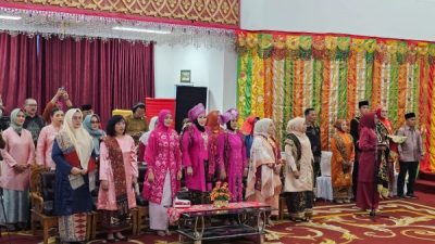 Selanjutnya, Ketua TP PKK, Lisda Hendrajoni, dan Ketua GOW, Ny. Risnaldi Ibrahim, juga menerima kalungan selendang dari Ketua Bundo Kanduang dan Ketua DWP Pesisir Selatan.