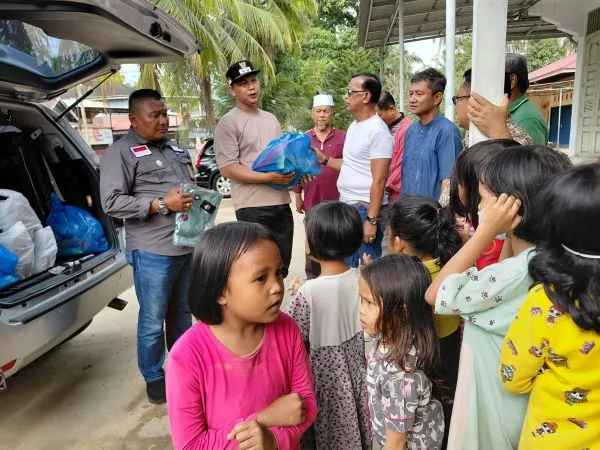 Bantuan diserahkan Alwis Ilyas kepada Kepala Desa Punggung Ladiang Aulia Mardhi Arif disaksikan warga komunitas Lapau Os dan warga Dusun Sampan Punggung Ladiang. Adnal Yeka, A.Pi, M.Si juga turut langsung memasangkan baju kepada salah seorang anak hadir saat penyerahan bantuan.